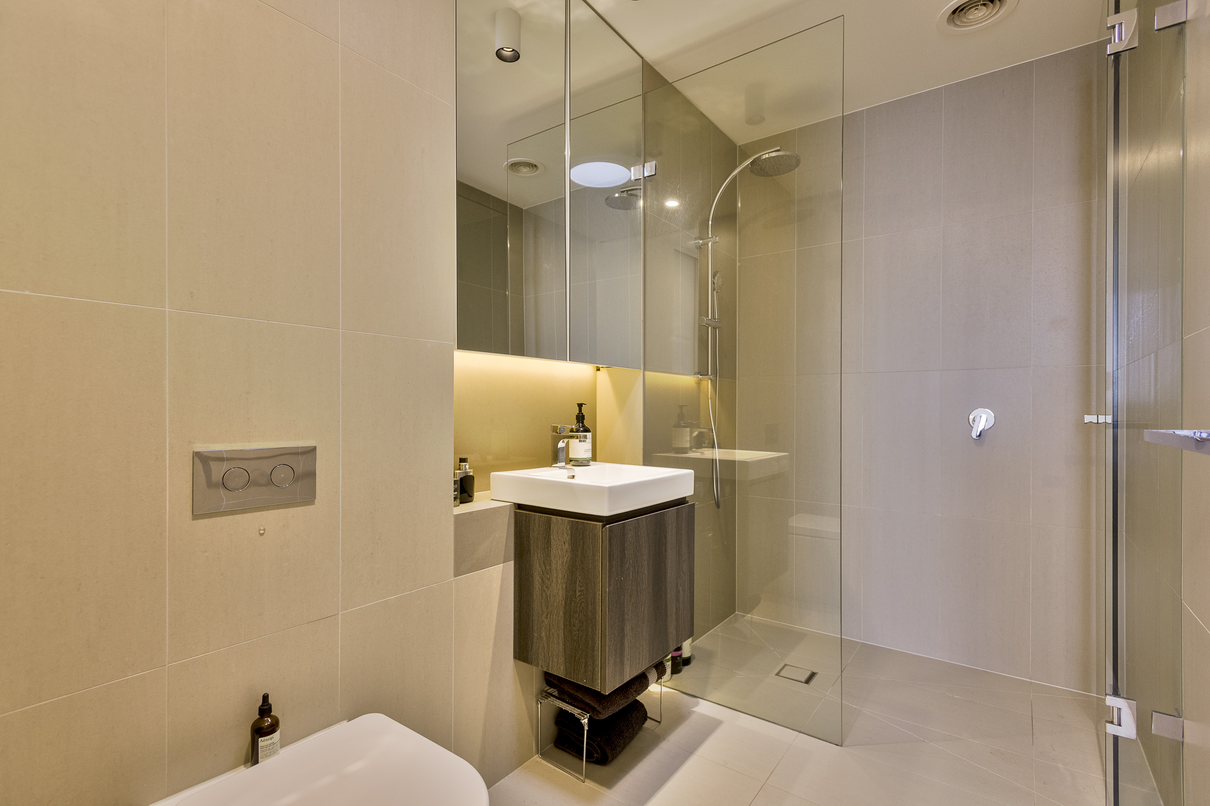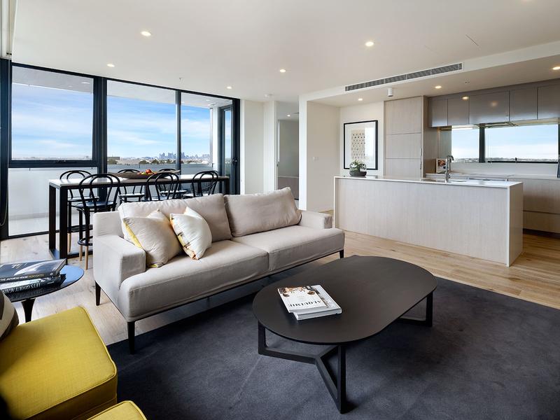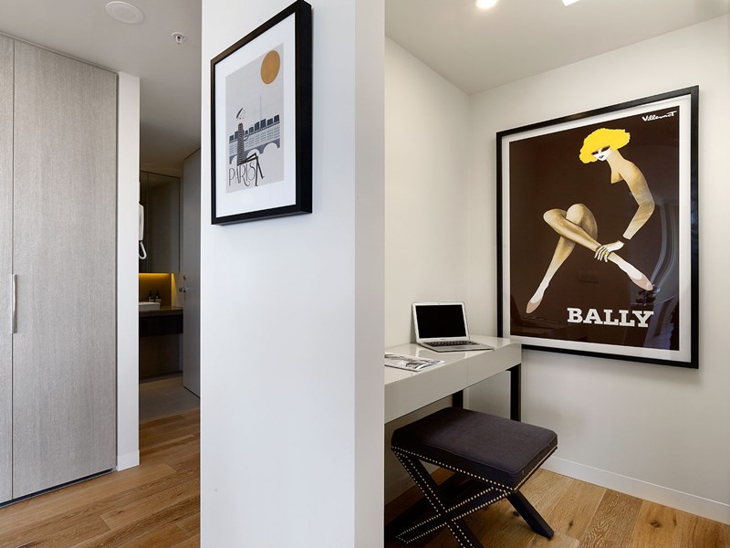 • Top floor- 6th Level • The kitchen is anchored by a beautifully functional island bench along with drainage grooves in the stone benchtop, wooden kitchen joinery, European appliances and significant storage space • Ducted heating and cooling • Full European laundry with trough